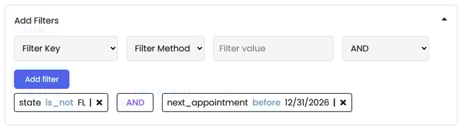 You can add multiple filters, and apply 'AND'/ 'OR' options, to create your desired recipient group.