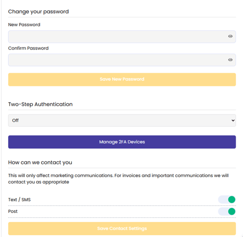 In the "My Settings", enter and confirm the new password and click 'Save New Password'