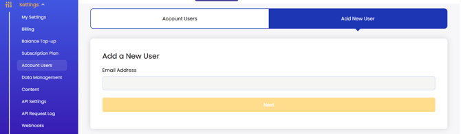 Once logged in to your Stannp account, go to 'Settings' at the left toggle menu, and 'Account Users'. You can review your current 'Account Users' and 'Add New User'.