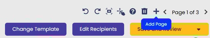 When in your design, head to the design command options at the top of the page and simply click the '+' add page button. You'll see the page number range to the right increase and you can toggle thorough the pages there too!