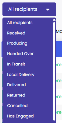 From here you can view the status of the campaign and use the table dropdown to filter view recipients who have engaged with the direct mail item by scanning the QR code. You can export this data and view any other tracking data here.